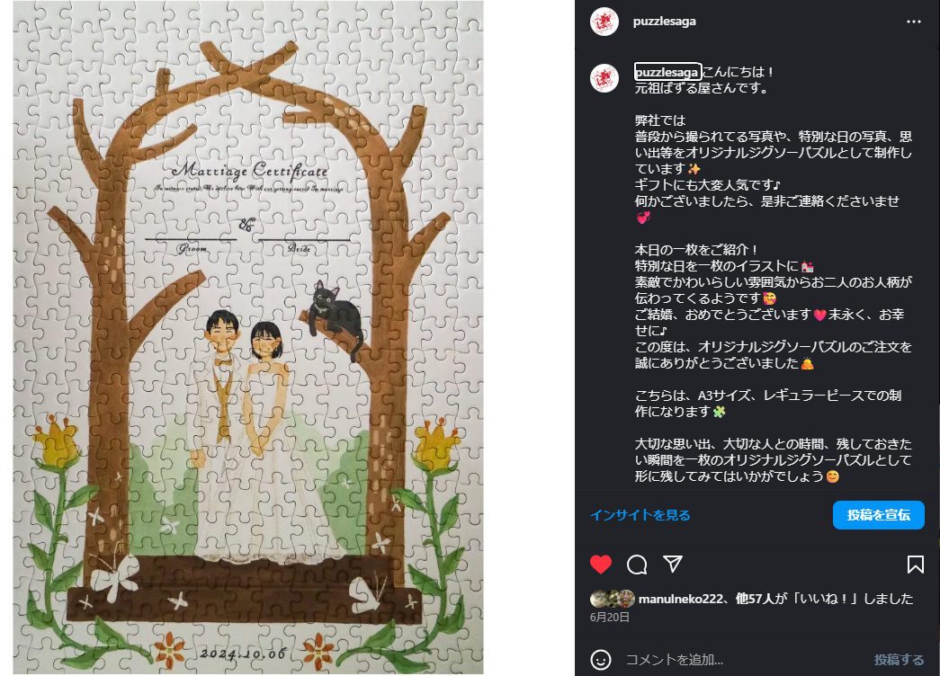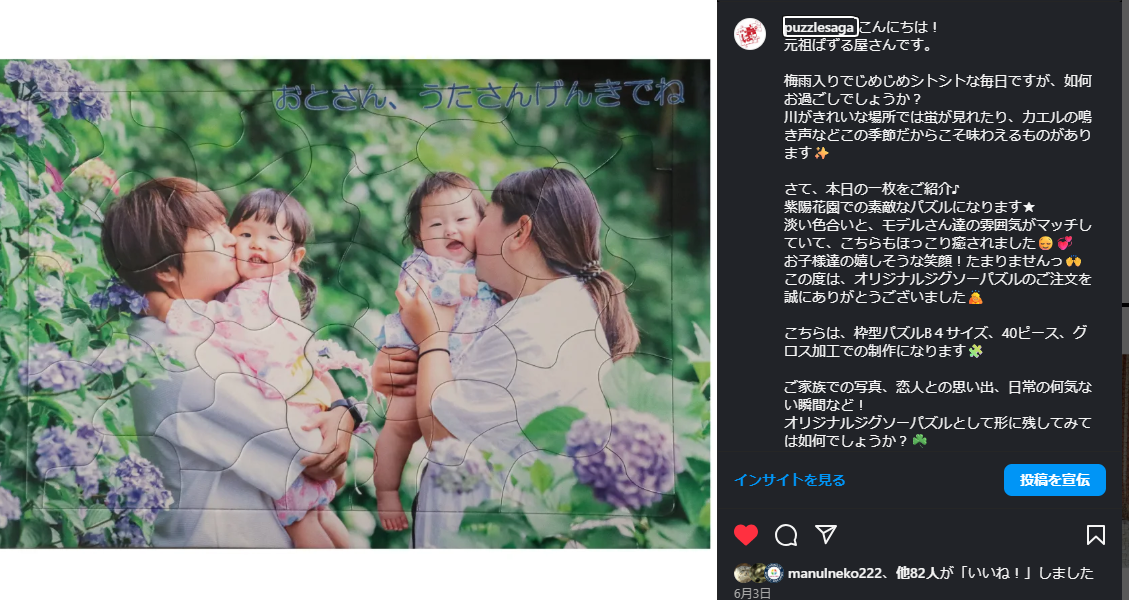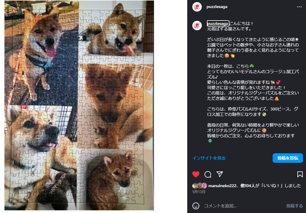 インスタグラムで紹介(イラストをパズルにほほえましいです!!)