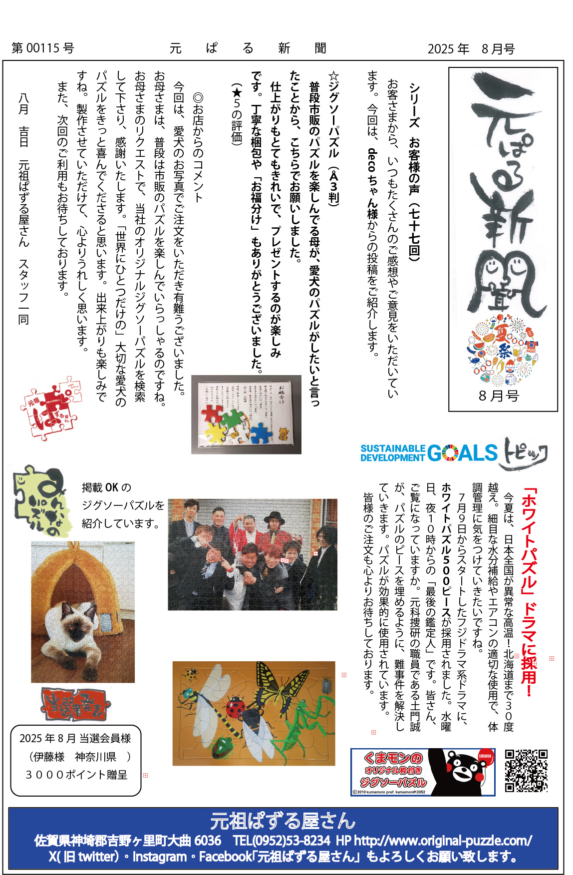 元ぱる新聞|令和7年8月号|ホワイトパズルがドラマで採用