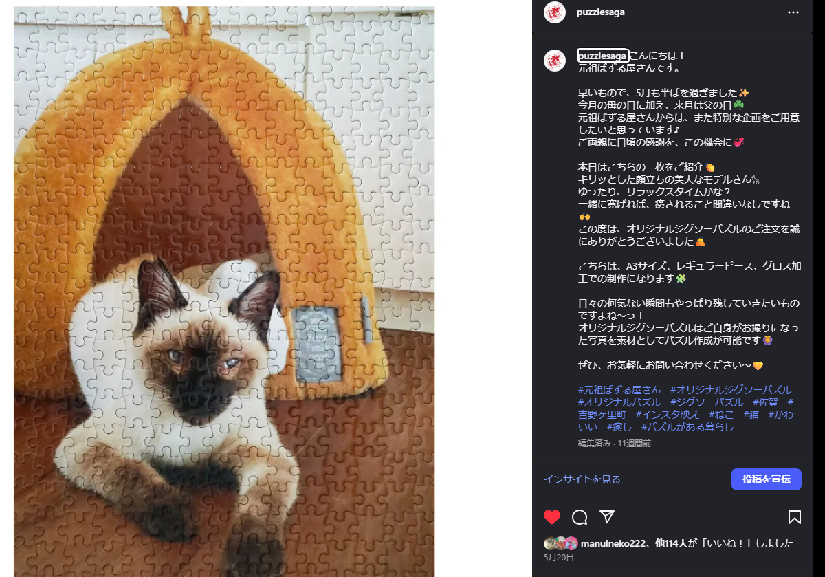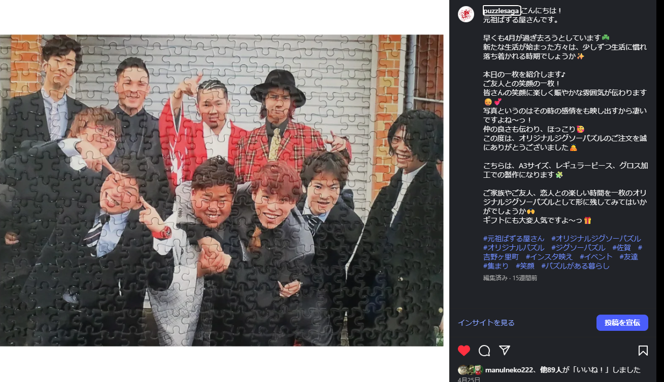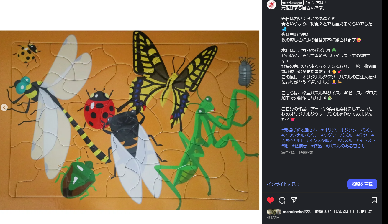 今月の掲載オーケーのジグソーパズルは画像をクリックっしたら元祖ぱずる屋さんのインスタへ