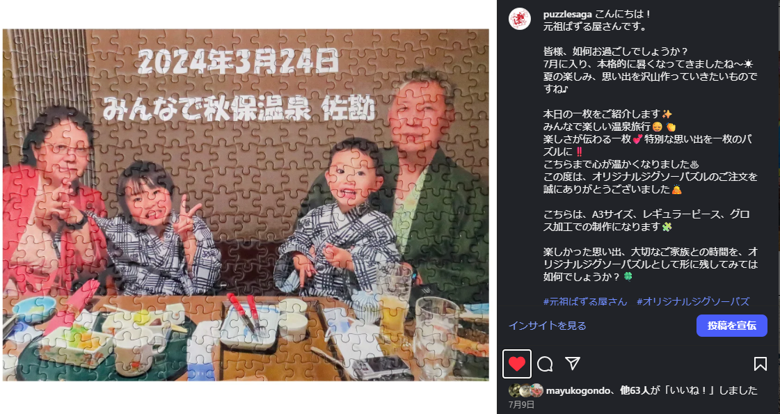 今月の掲載オーケーのジグソーパズルは画像をクリックっしたら元祖ぱずる屋さんのインスタへ