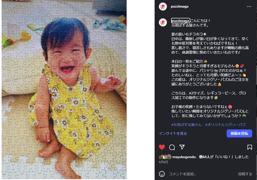 インスタグラムで紹介(大自然の風景をジグソーパズルに、お部屋に飾られるんでしょうか)