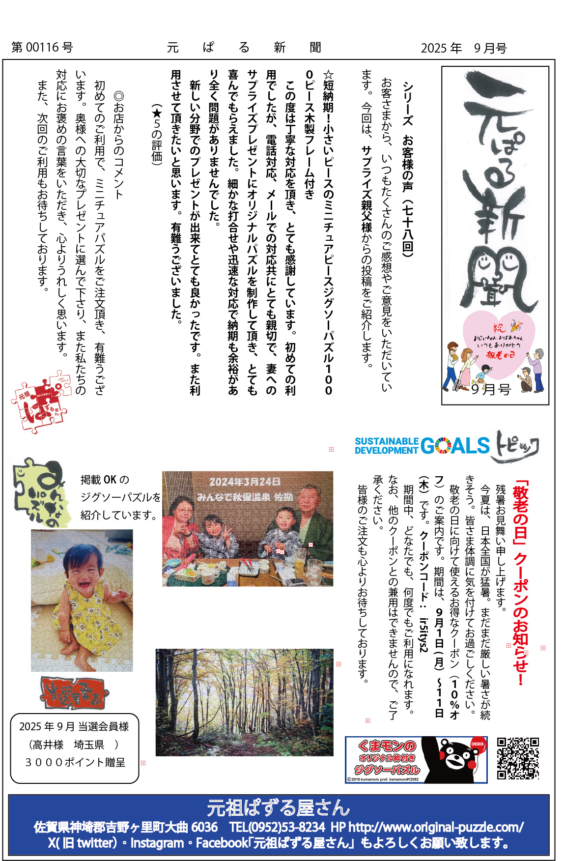元ぱる新聞|令和7年9月号|敬老の日クーポン発行中!!