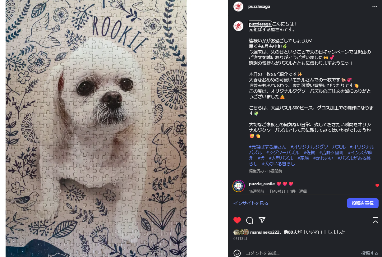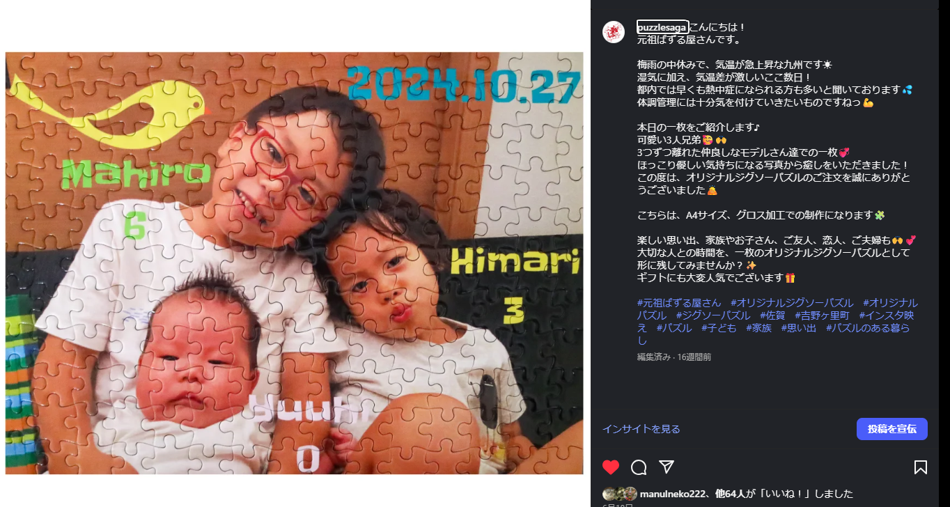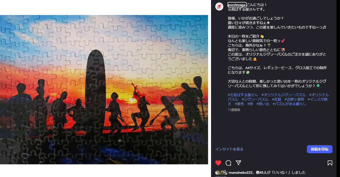 今月の掲載オーケーのジグソーパズルは画像をクリックっしたら元祖ぱずる屋さんのインスタへ