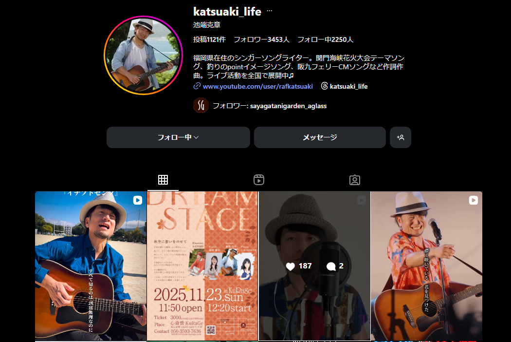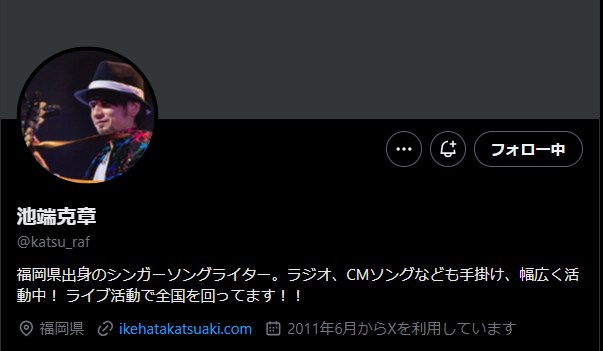 シンガーソングライター 池端克章氏のSNSの紹介です。(画像をクリック)