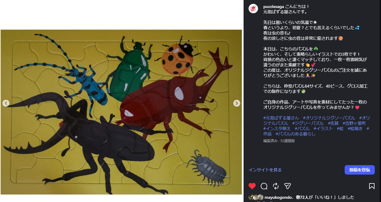 今月の掲載オーケーのジグソーパズルは画像をクリックしたら元祖ぱずる屋さんのインスタへ