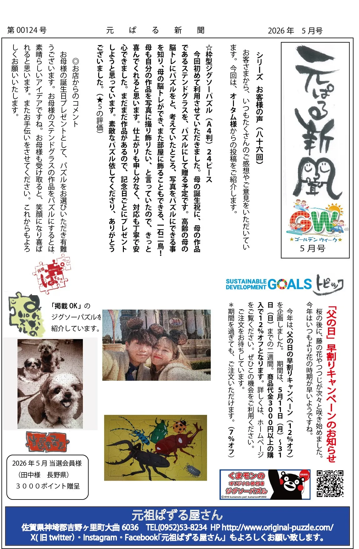 元ぱる新聞|令和8年5月号|5月11日スタート!父の日早割クーポンで、パズルをお安くゲット!!